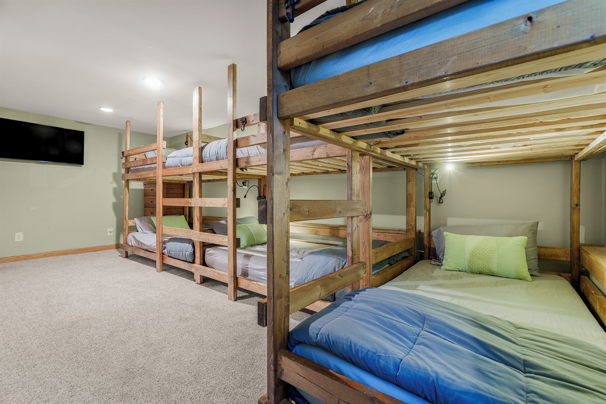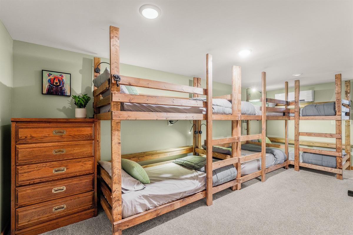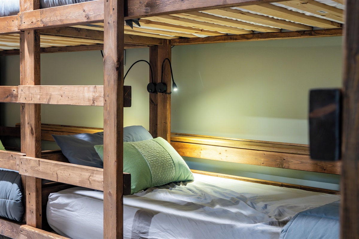 - BR4: Bunk room with 3 sets of twin-over-twin beds and built-in reading lights