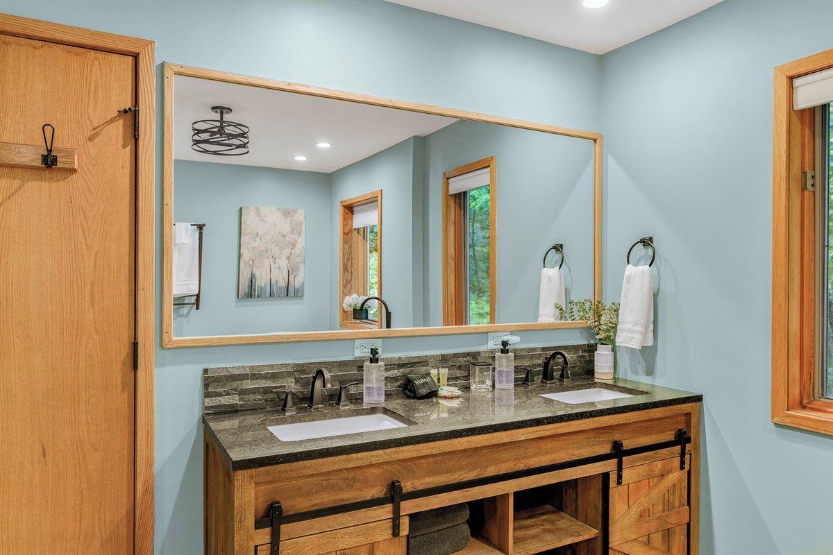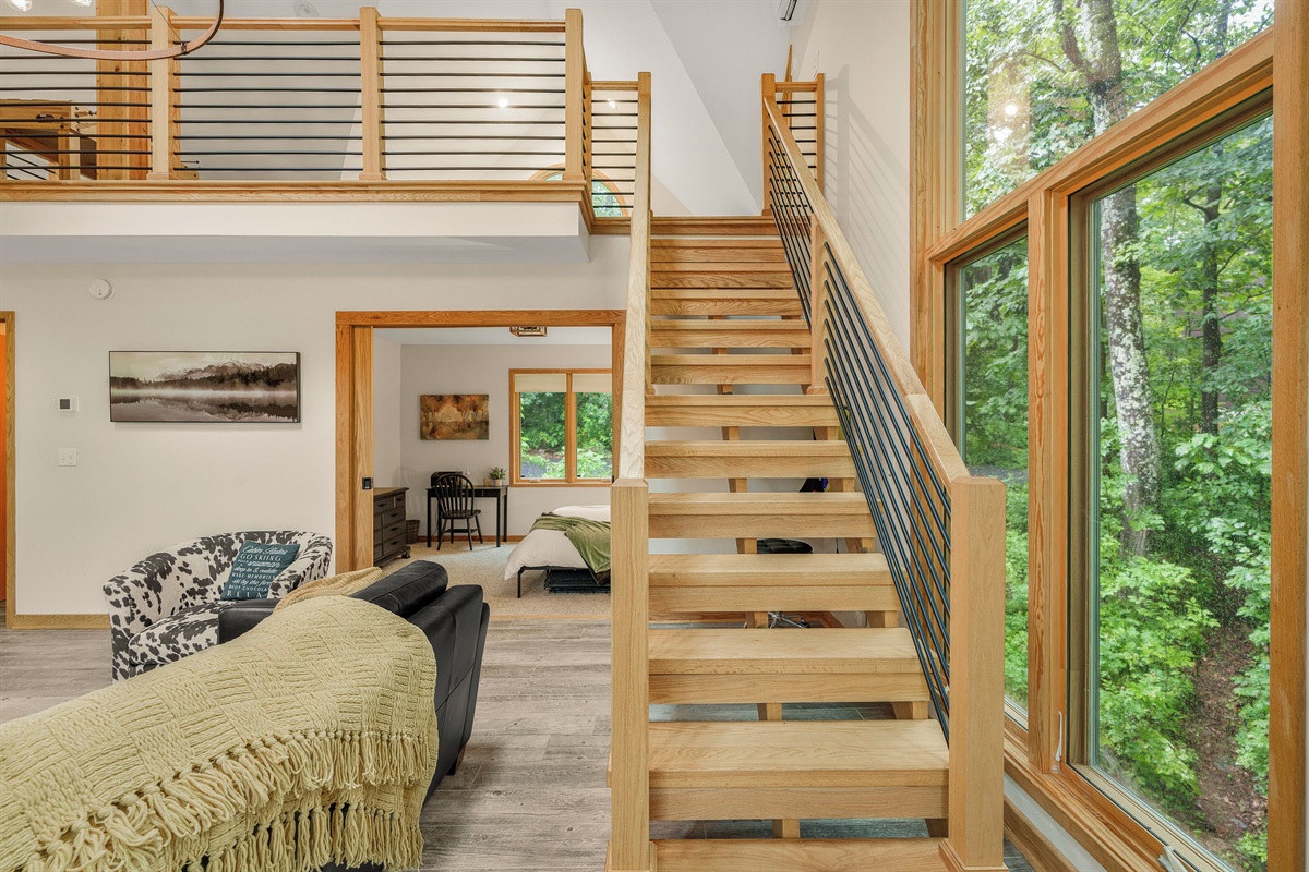 Welcome to the Mountain Treehouse! We recently renovated the home with all upgraded amenities, including a brand new hot tub, barrel sauna, fire table outside, and two-sided wood burning fireplace inside. The home is nestled in the tree tops, with oversized windows allowing natural light to fill the space, and has fantastic privacy. Vaulted two story ceilings make the home feel wide open and spacious. Plus, pet friendly!